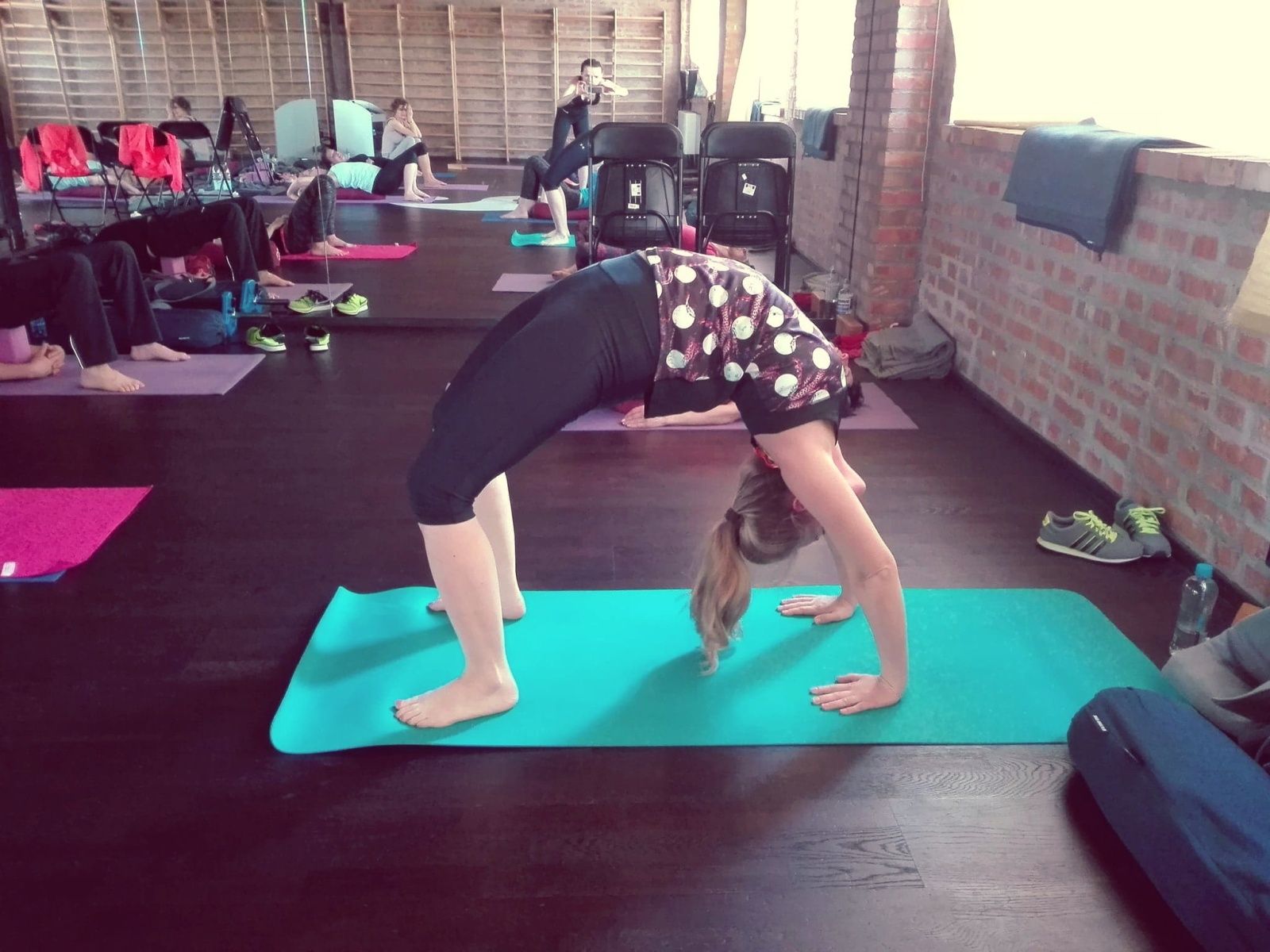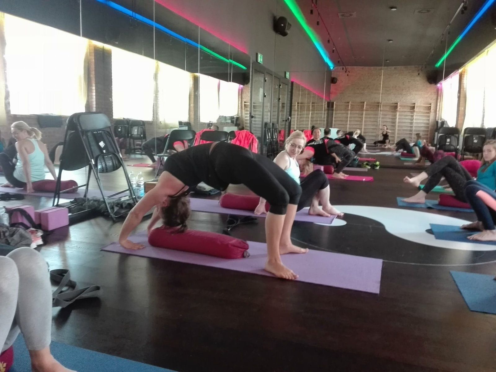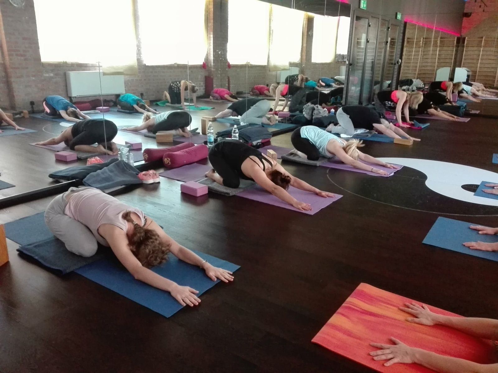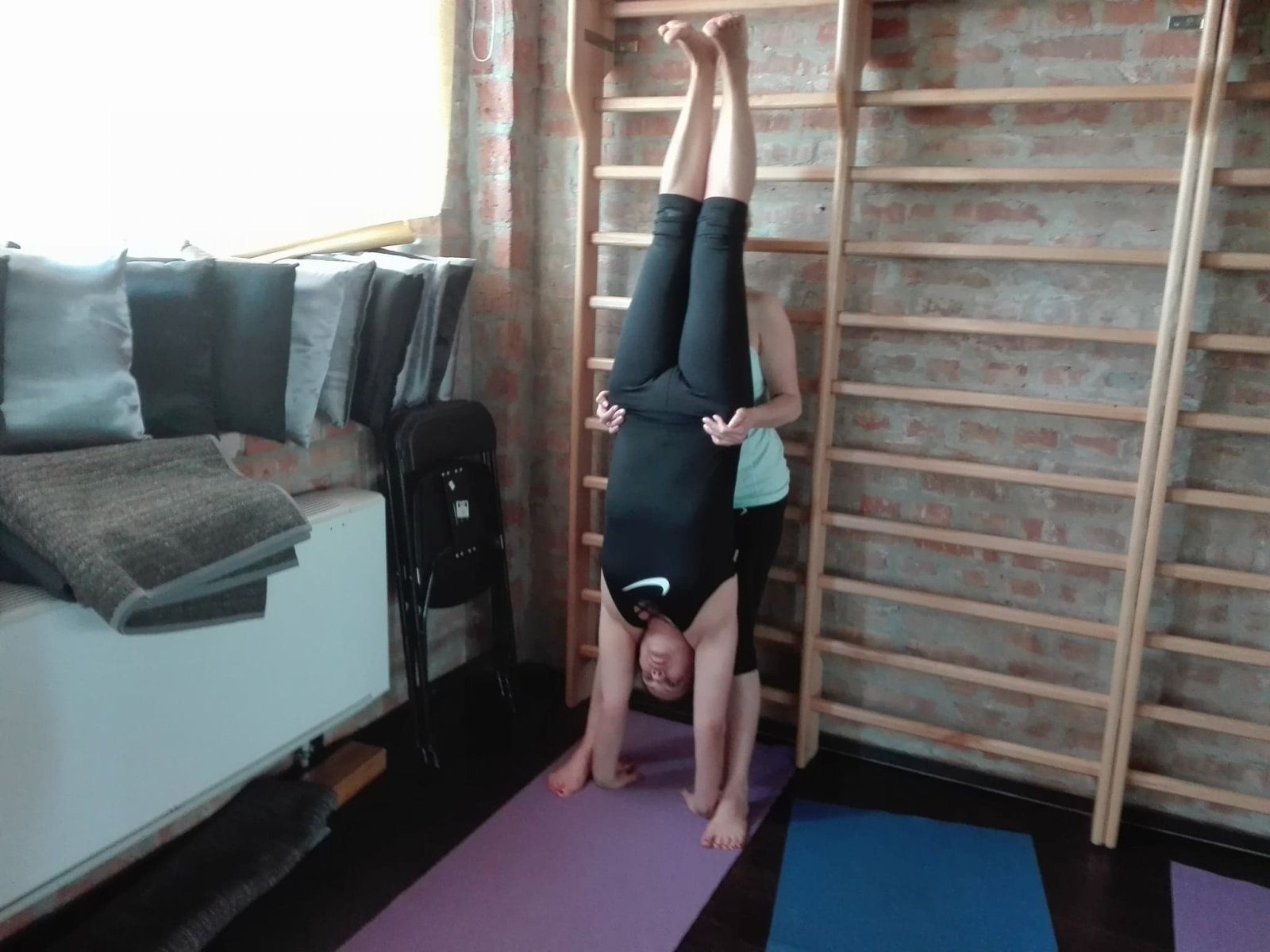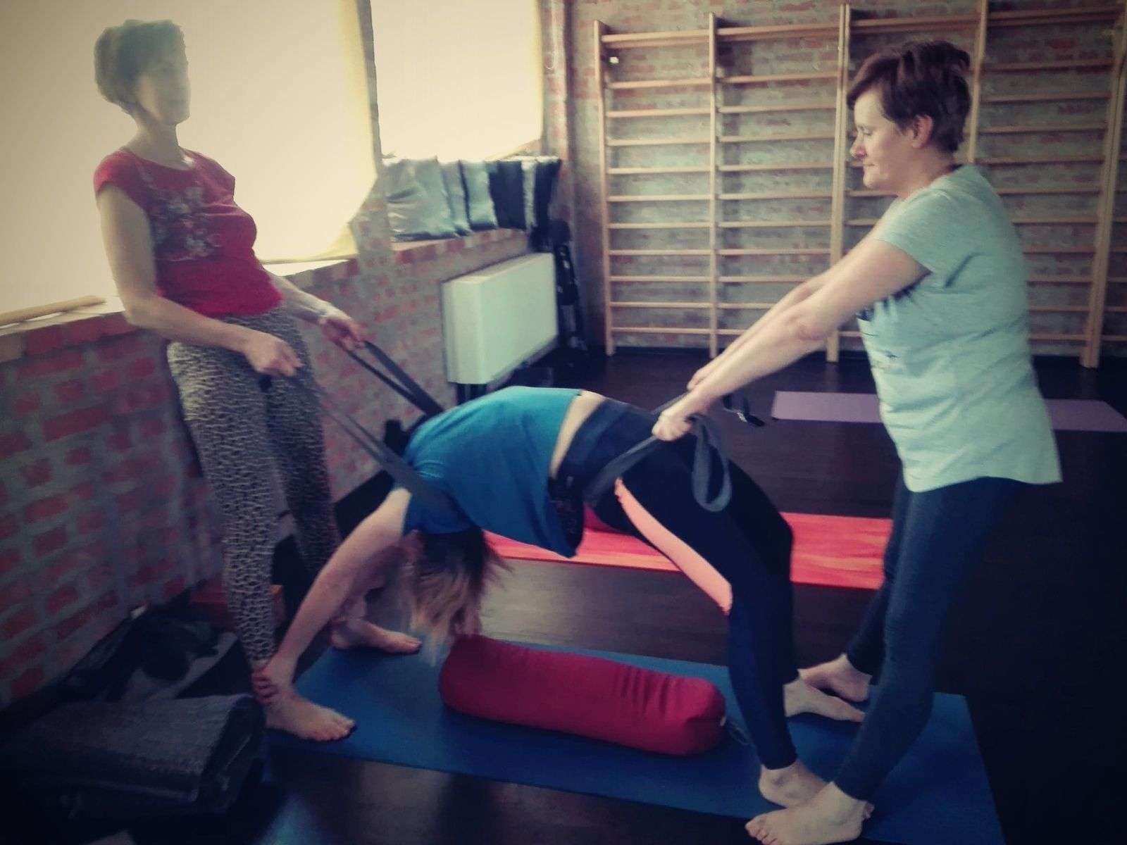 Od sobotniego poranka pracowaliśmy nad usprawnieniem stabilności ciała w skrętach, wygięciach oraz pozycjach odwróconych. Pozycje te usprawniają kręgosłup, zwiększają jego siłę i elastyczność. Dodają żywotności, energii i lekkości jak np. stanie na rękach. Usuwają bóle pleców, szyi oraz barków. Na poziomie organicznym masują nerki i nadnercza, poprawiają równowagę hormonalną. Jak stwierdziła jedna uczestniczek warsztatów pozycje te obudziły jej “wewnętrzne dziecko”. Oto kilka zdjęć z warsztatów pogłębionej praktyki. Zapraszam.
