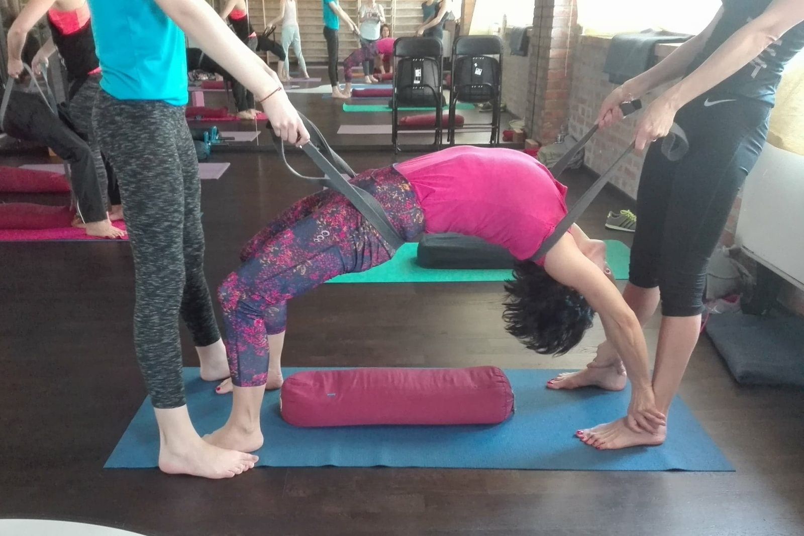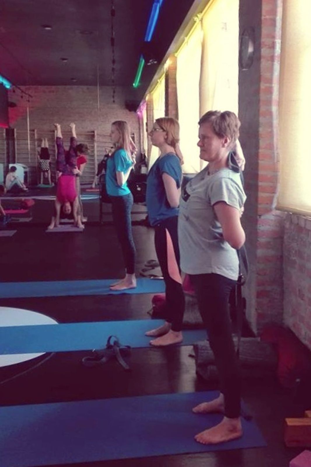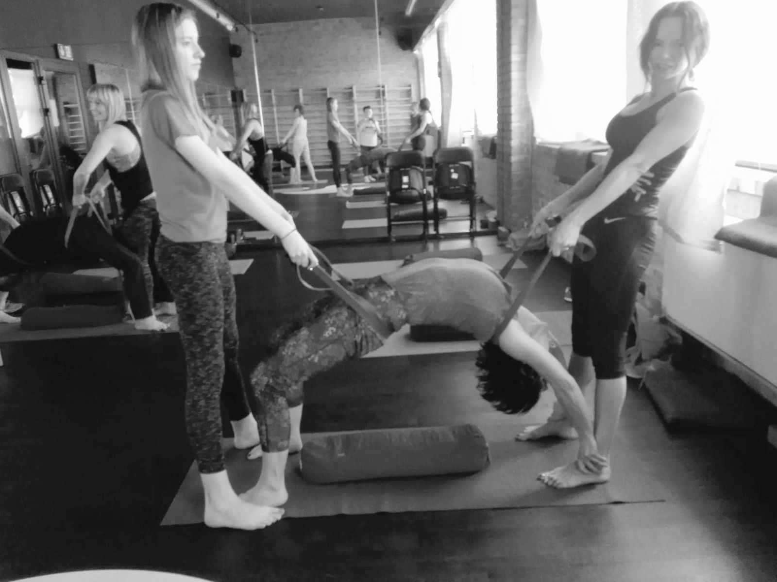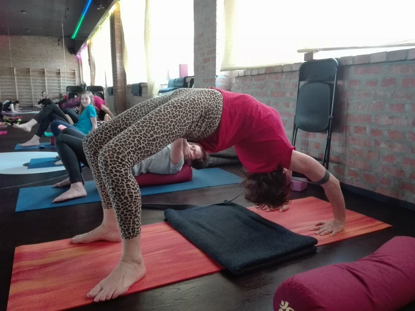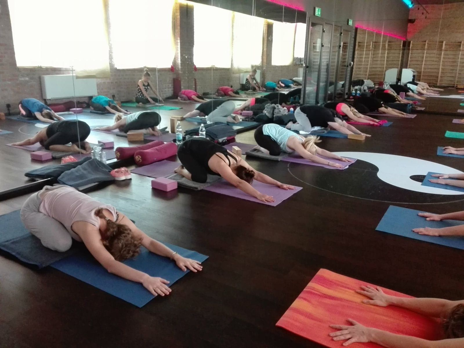 Od sobotniego poranka pracowaliśmy nad usprawnieniem stabilności ciała w skrętach, wygięciach oraz pozycjach odwróconych. Pozycje te usprawniają kręgosłup, zwiększają jego siłę i elastyczność. Dodają żywotności, energii i lekkości jak np. stanie na rękach. Usuwają bóle pleców, szyi oraz barków. Na poziomie organicznym masują nerki i nadnercza, poprawiają równowagę hormonalną. Jak stwierdziła jedna uczestniczek warsztatów pozycje te obudziły jej “wewnętrzne dziecko”. Oto kilka zdjęć z warsztatów pogłębionej praktyki. Zapraszam.